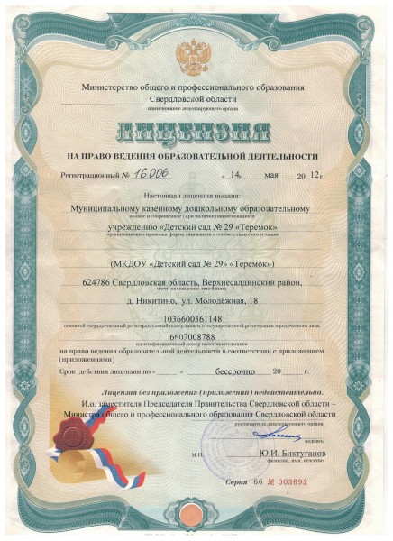 Адрес местонахождения образовательной организации* 624786, Свердловская область, Верхнесалдинский муниципальный округ Свердловской области, д.Никитино, ул.Молодежная, 18